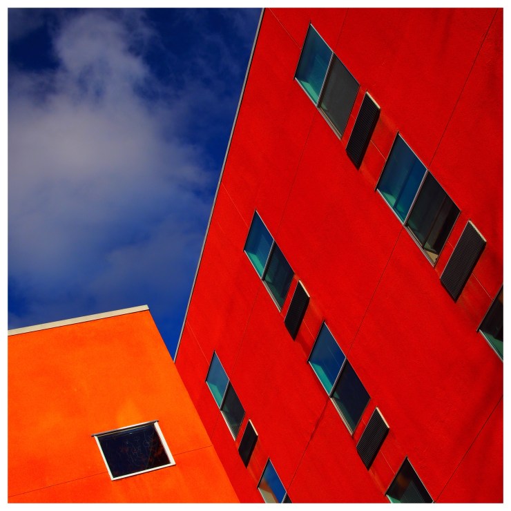 #California #Sacramento #Midtown #apartmentbuilding #architecture #streetphotography #red #orange #blue #polarized #sky #windows #graphic #lines #squares #strong #color