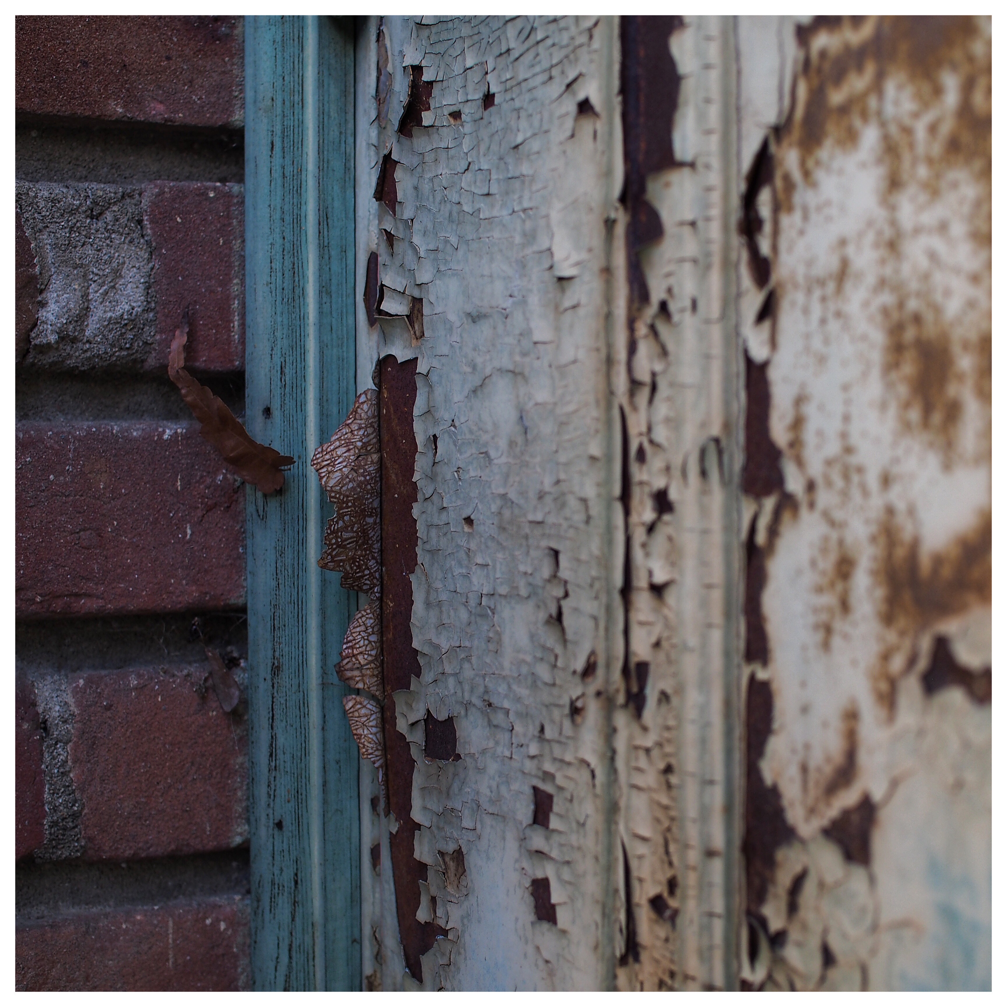 #California #Sacramento #midtown #detail #leaf #texture #peeling #paint #brick #redwhiteandblue