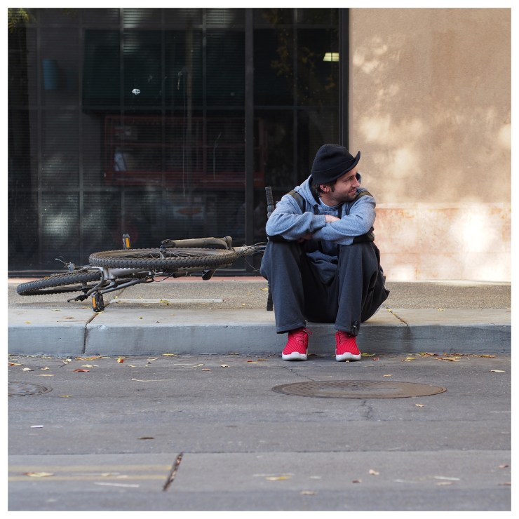 #California #Modesto #Downtown #streetphotography #colorphotography #redshoes #dude #bicycle #justhangingout