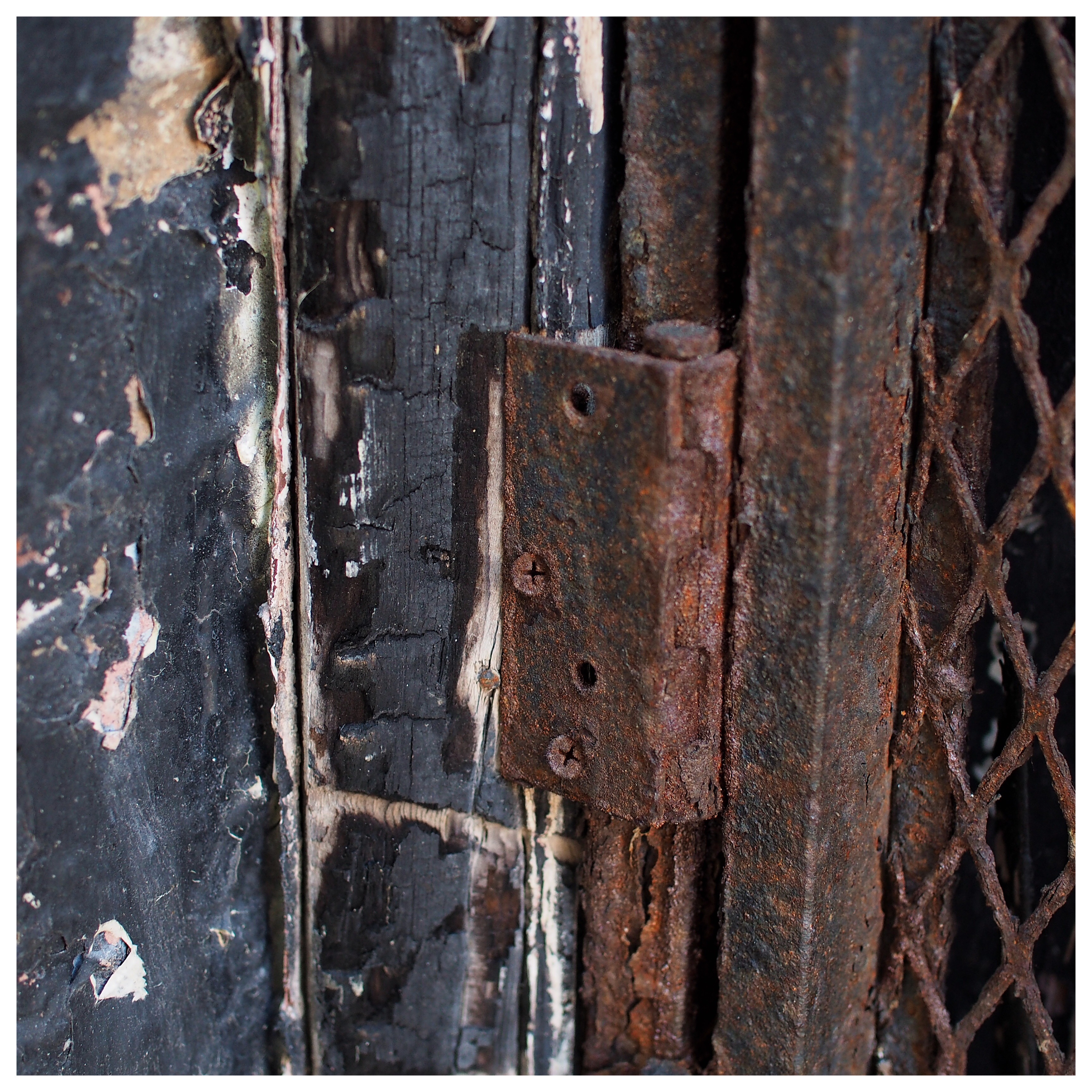 #California #SanFrancisco #latergram #detail #wood #metal #charcoal #rust #burned #rusted #damaged but not #down #simple #black #beige #red