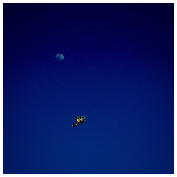 #California #SanFrancisco #summer #sky #kite #monkeykite #moon #daymoon #blue #simple #minimal #primelens #streetphotography #colorphotography #vignette #bluemoon