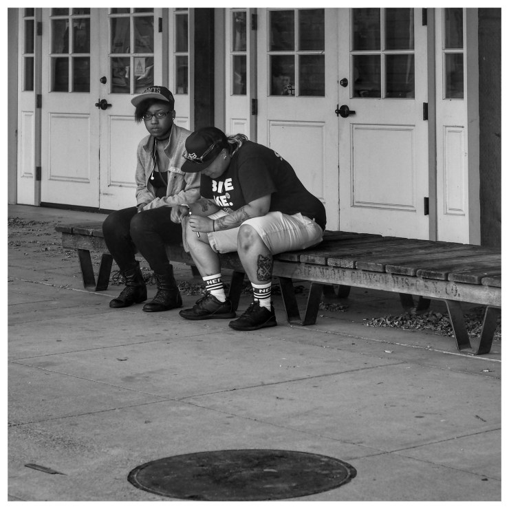 #California #Sacramento #OldSac #streetphotography #bw #blackandwhitephotography #oldtown #friends #doors #girl #bench #hangingout #killingtime #whatareyoulookingat