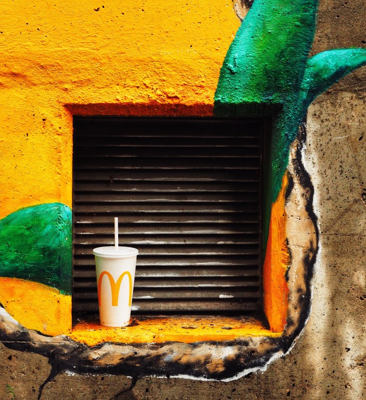 … #yellow #green #brown #mural #graffiti #detail #art #foundart #mcdonalds #cup #soda #texture #grain #rainyday #notquite #washedclean