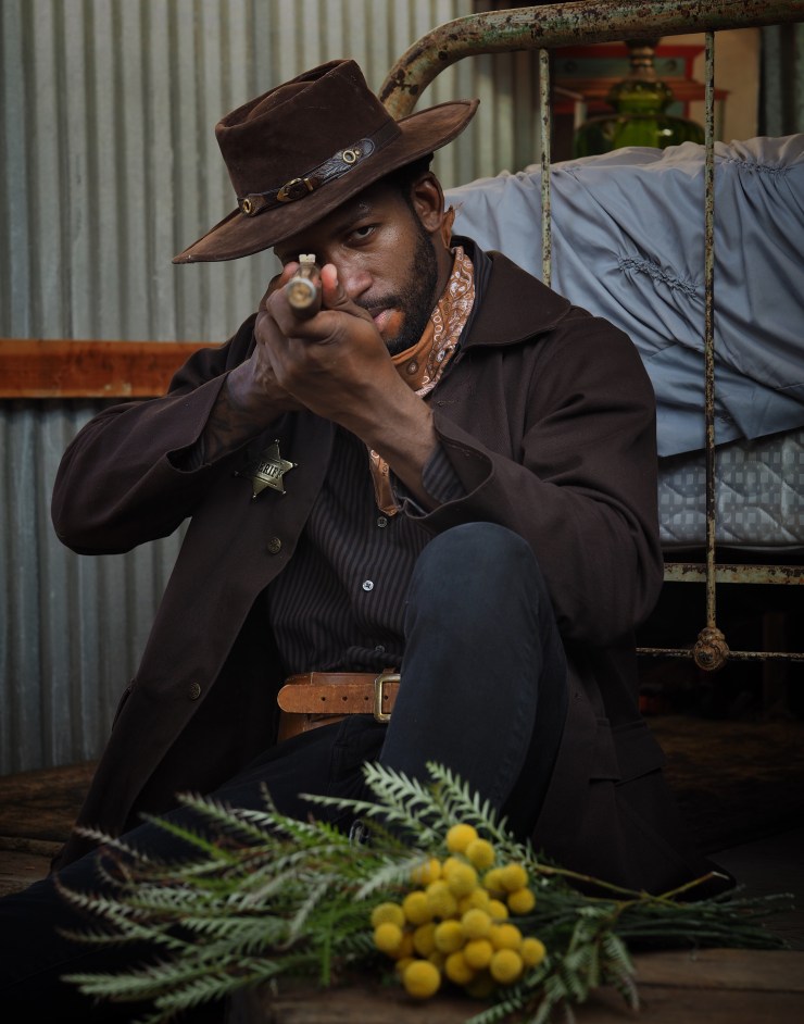 … #cowboy #cowboyhat #western #rifle #flowers #guardian #blackcowboy #westcoast #homestead #natural_light #naturalightphotography