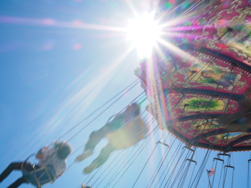 Posted on August 30, 2022 by word problemSmall Flag, Big Sun #countyfair #summersend #californiasummer #waverider #midway #midwayride #carnivalride #freebird Share this: Click to share on X (Opens in new window) X Click to share on Facebook (Opens in new window) Facebook Like Loading...