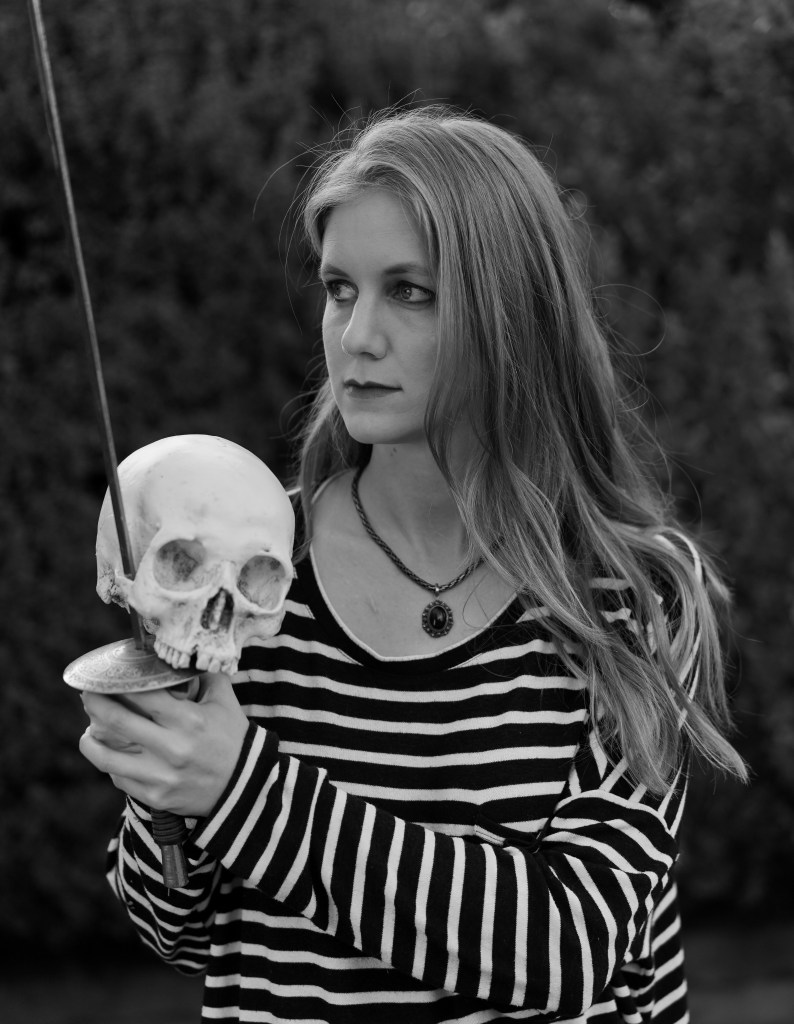 Posted on September 26, 2021Hamlet California #Sacramento @kimberlyannehiggins #makeupartist @rainfactorfx #wparockgarden #garden #hamlet #genderflip #hamletobsession #yorick #alaspooryorick #skull #sword #epee #stripe #blackandwhitephotography #blackandwhitephotographylovers Share this: Click to share on X (Opens in new window) X Click to share on Facebook (Opens in new window) Facebook Like Loading...