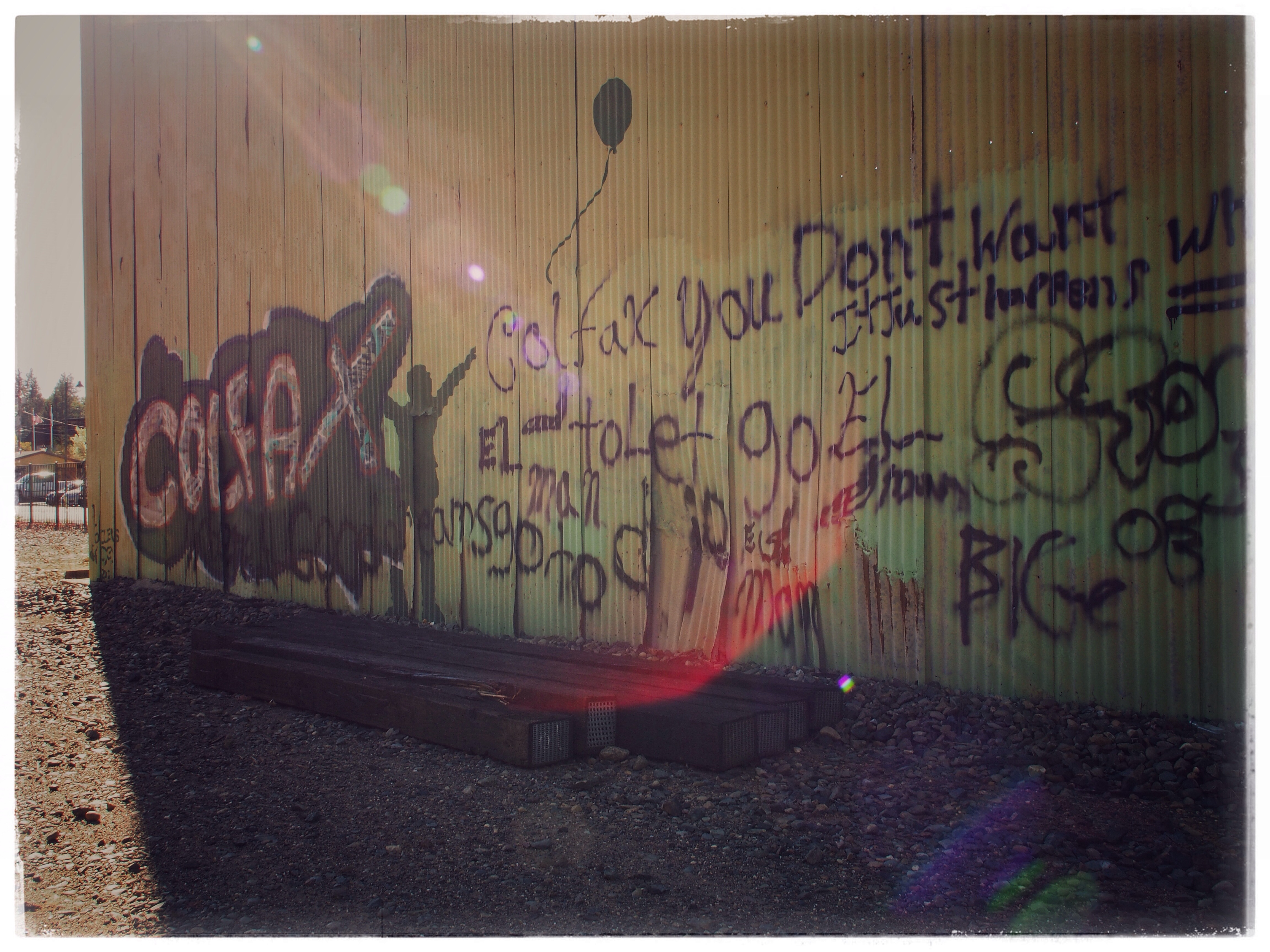 Posted on April 28, 2016Just Happens to Let Go #California #Colfax #NorCal #RuralCalifornia #graffiti #graphic #lensflare #flare #motto Share this: Share on X (Opens in new window) X Share on Facebook (Opens in new window) Facebook Like Loading...