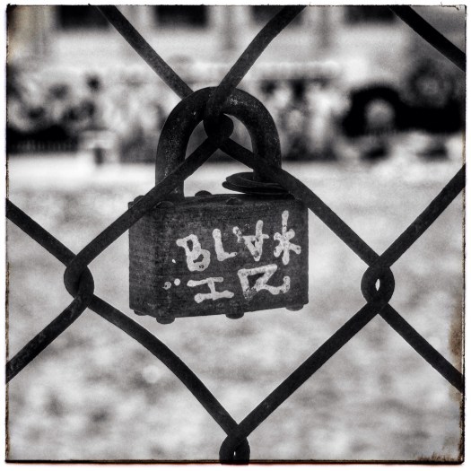 Posted on January 11, 2016Locked in Place #California #Stockton #padlock #lock #chainlink #fence #mono #black #blackandwhite #grid #graphic Share this: Share on X (Opens in new window) X Share on Facebook (Opens in new window) Facebook Like Loading...