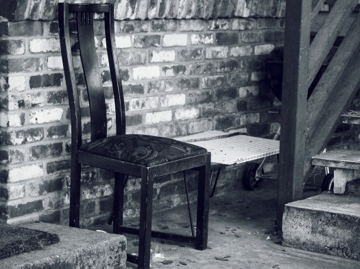 Posted on November 24, 2015Paisley #California #Sacramento #MidTown #chair #steps #brick #emptychairproject #mono #blackandwhite #dark Share this: Share on X (Opens in new window) X Share on Facebook (Opens in new window) Facebook Like Loading...
